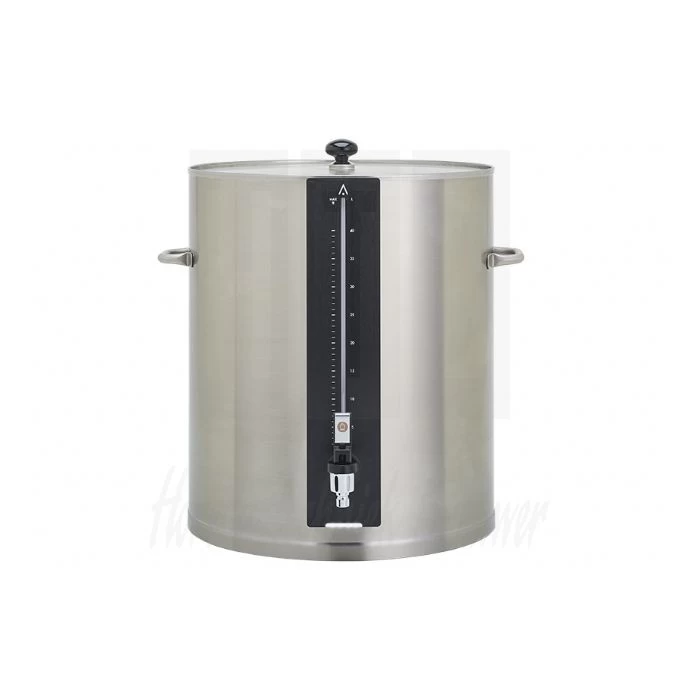 Transportabele geïsoleerde stapelbare container met geïntegreerd peilglas en no-drip kraan. Standaard voorzien van transportschijf / koffiemenger en geïsoleerd deksel.