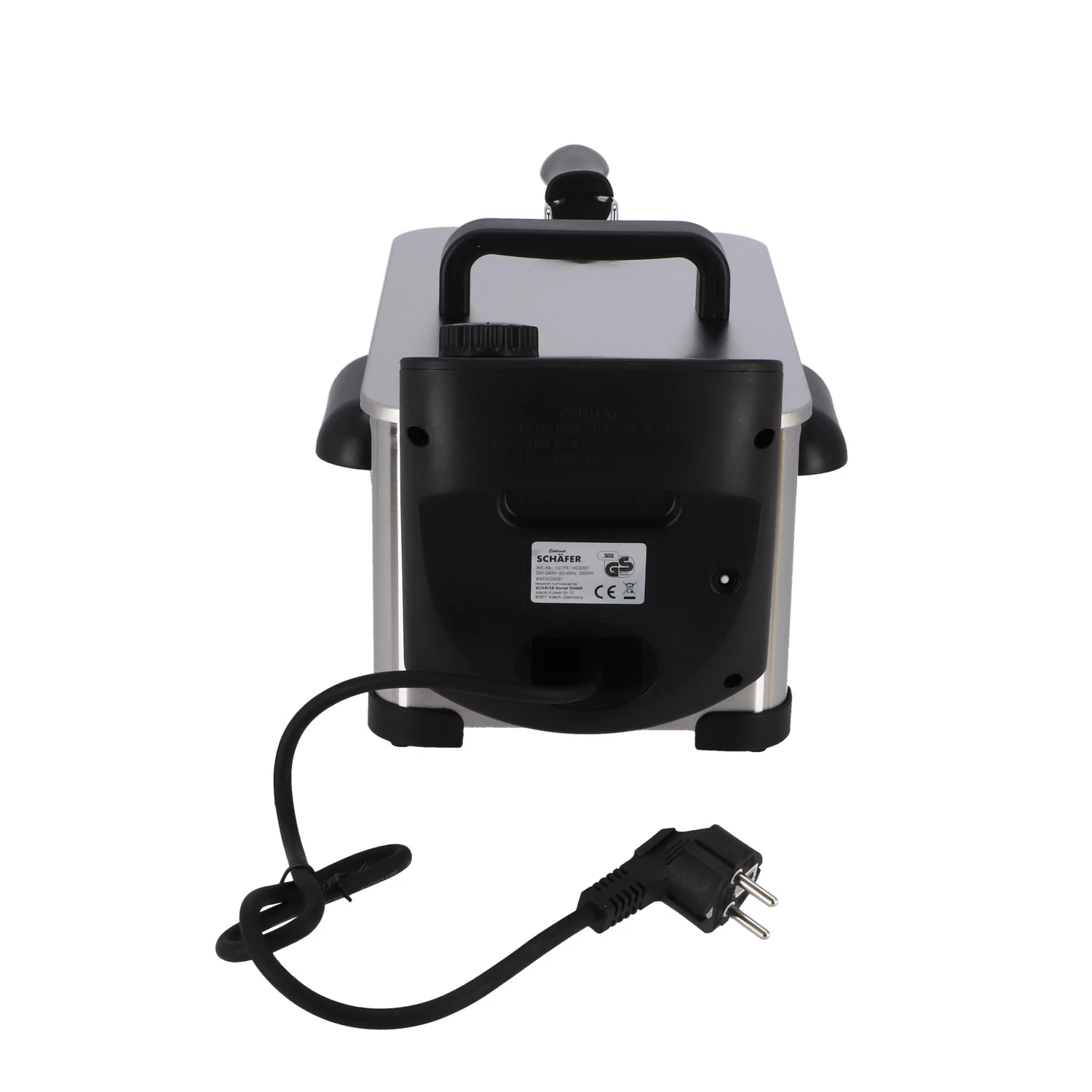 - Gebruiksgemak: De Schäfer frituurpan is eenvoudig in gebruik dankzij de draaiknop voor temperatuurregeling tot 190 graden Celsius, een verwarmingsindicatielampje en koele handgrepen. Daarnaast zorgen de anti-slip voetjes voor extra stabiliteit.