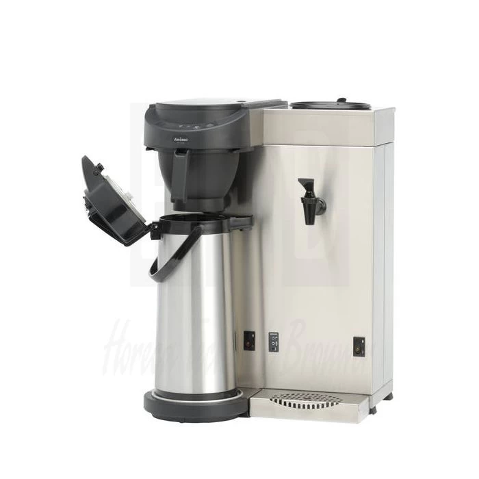 De zettijd bedraagt 9 minuten voor 1 volle thermoskan (ca. 2,1 liter). Uitgifte van de koffie is met de pompthermoskan heel eenvoudig. Dankzij de extra waterkoker beschikt u ook over heet water voor thee.